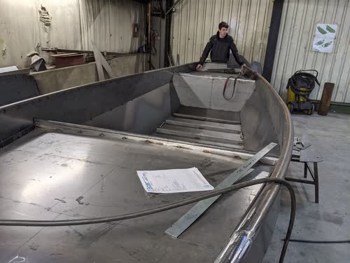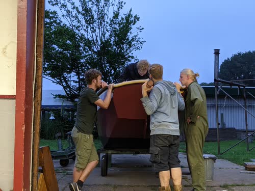gewicht te besparen, ons eigen zwaardophanging-systeem, steunen voor bankjes waar je goed op kunt slapen en zo nog wat. De bouw kan in april 2021 van start en we spraken af een van onze huidige schouwtjes bij Boer Metaal op het terrein te zetten zodat op details de maatvoering overgenomen kon worden.