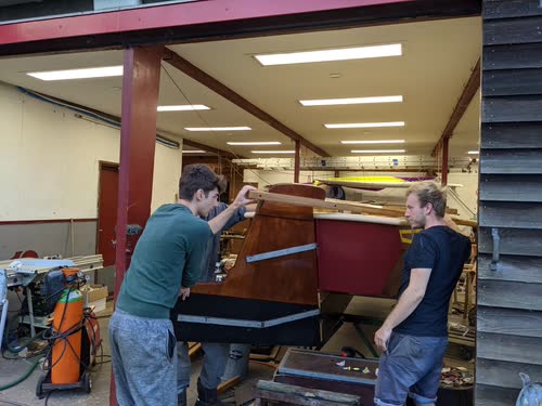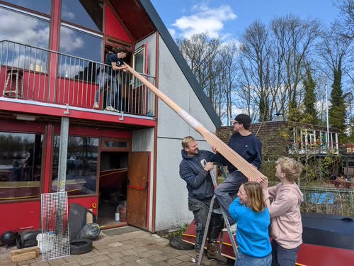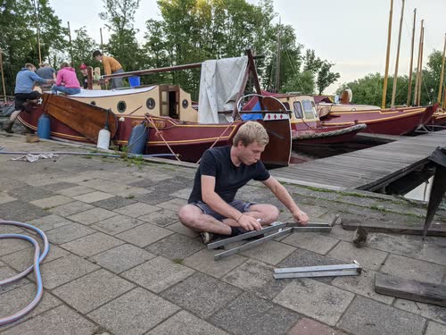 Het houtwerk (mast, giek, zwaarden en roer) uitbesteden ging moeilijker dan gedacht. Alle groepen die we gesproken hadden hadden dit opgelost op een manier die voor ons niet beschikbaar was. Op een werf die niet meer bestaat, iemand die het niet meer doet... Van alle partijen die we benaderden reageerde nog niet de helft en daarvan kwam alleen Alma Scheepsbetimmeringen een prijs die in de buurt lag van wat we begroot hadden. We geven de opdracht aan Sven Alma.