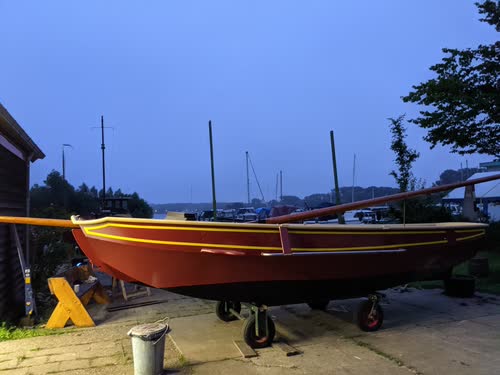 Nu nog een mast, zwaarden, zeil, vlonders, ... en zo voort.