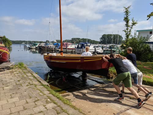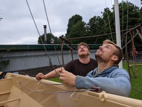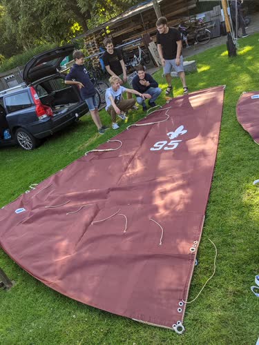 Het is ondertussen kritisch geworden rond het grootzeil. Na een volgende afstemming blijkt het zeil nog steeds geleverd te gaan worden in de eerste week van het zomerkamp.